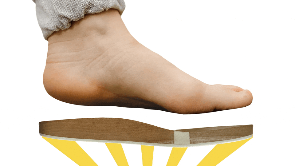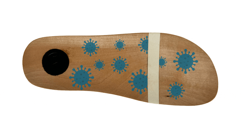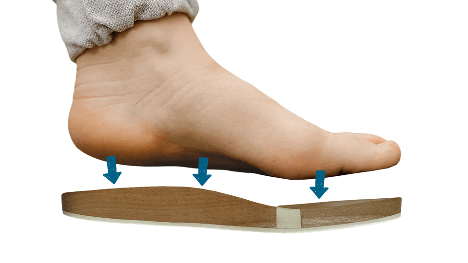 The wooden footbed perfectly follows the phisiological movements of the foot